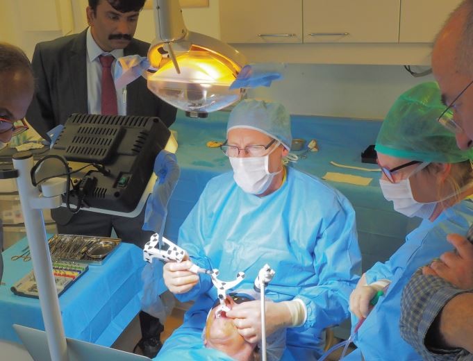Participants were introduced to the principles of real-time 3D drill tracking, system calibration, workflow integration, and intraoperative flexibility using the NAVIDENT Navigation System.